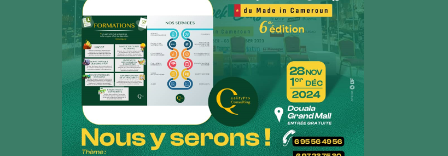 Du 28 Nov au 1er Dec 2024: Nous étions présent à la 6éme édition des Week-Ends du Made in Cameroun. Nous sommes allés à la rencontre des entrepreneurs made in Cameroun afin d’échanger sur les problématiques relatives à la conformité et la sécurité des produits.